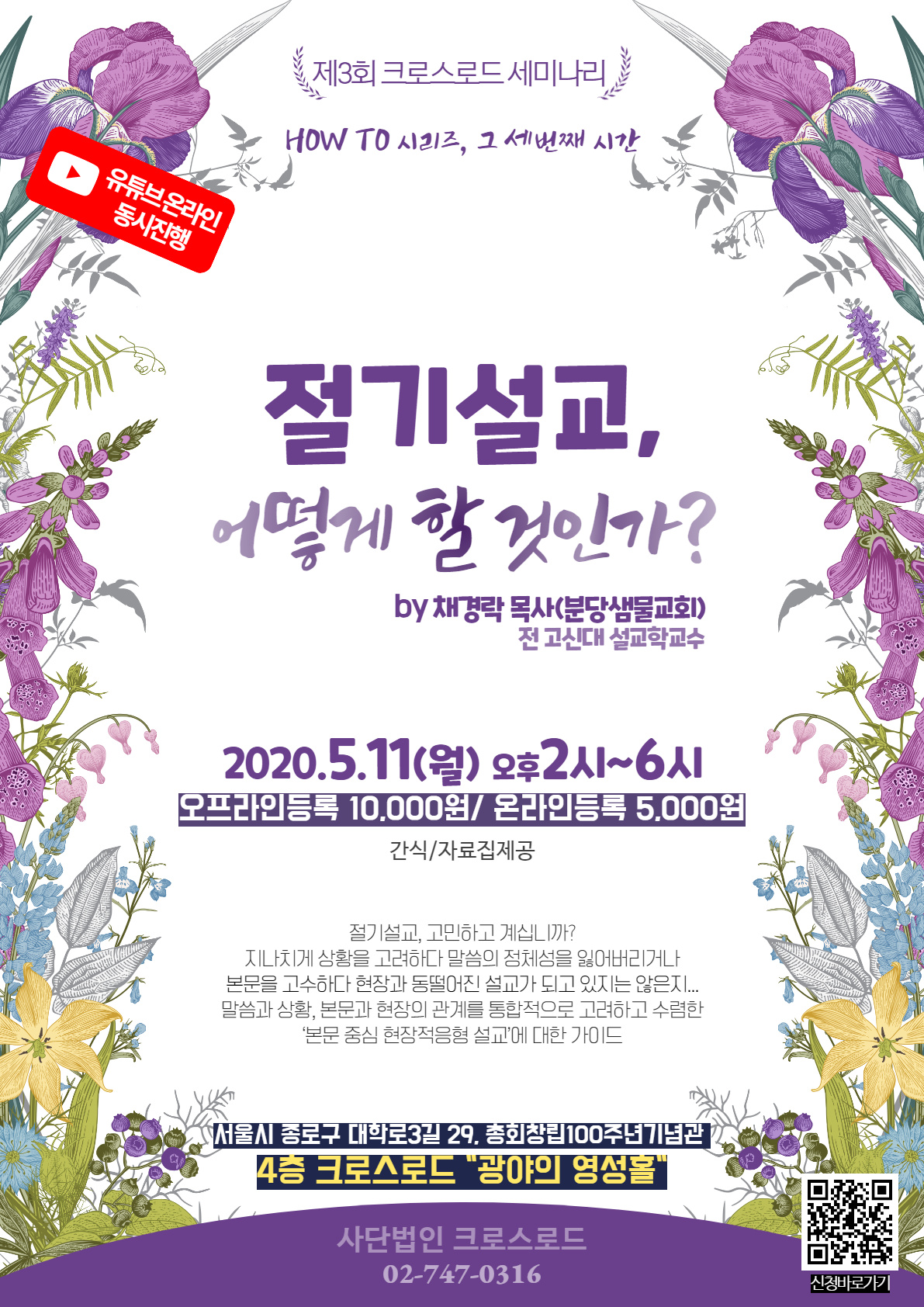 장소 : 서울시 종로구 대학로3길 29, 총회창립100주년기념관 사단법인 크로스로드 광야의영성홀(4층)