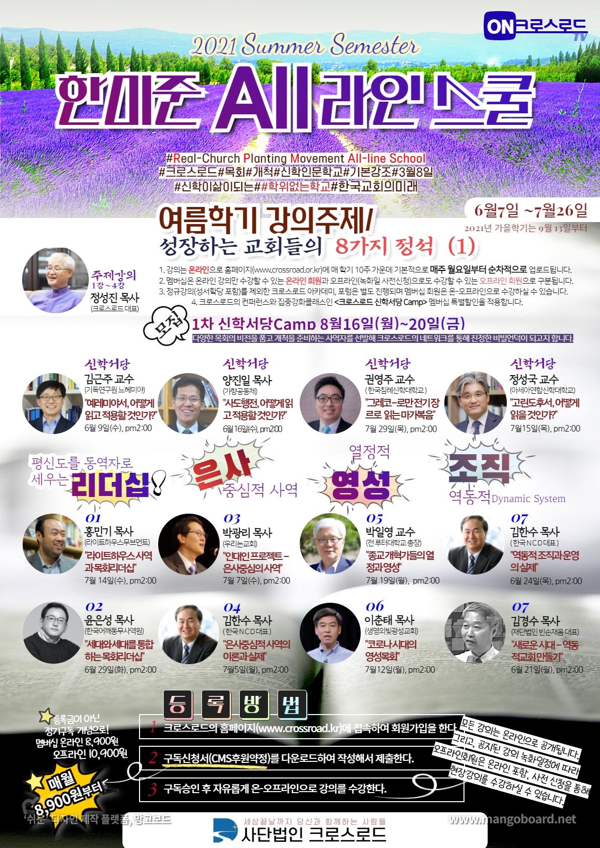 한미준 All라인 스쿨 2021년도 여름학기가 시작됩니다. 후원회원 멤버십으로 등록하시면 전체 강의를 수강하실 수 있습니다. 모든 강의를 개별 수강하실 경우에는 1개 강의 10,000원의 수강료를 납부하셔야 합니다. 멤버십관련해서는 공지사항의 <가입안내>를 참고하시기 바랍니다. 감사합니다.